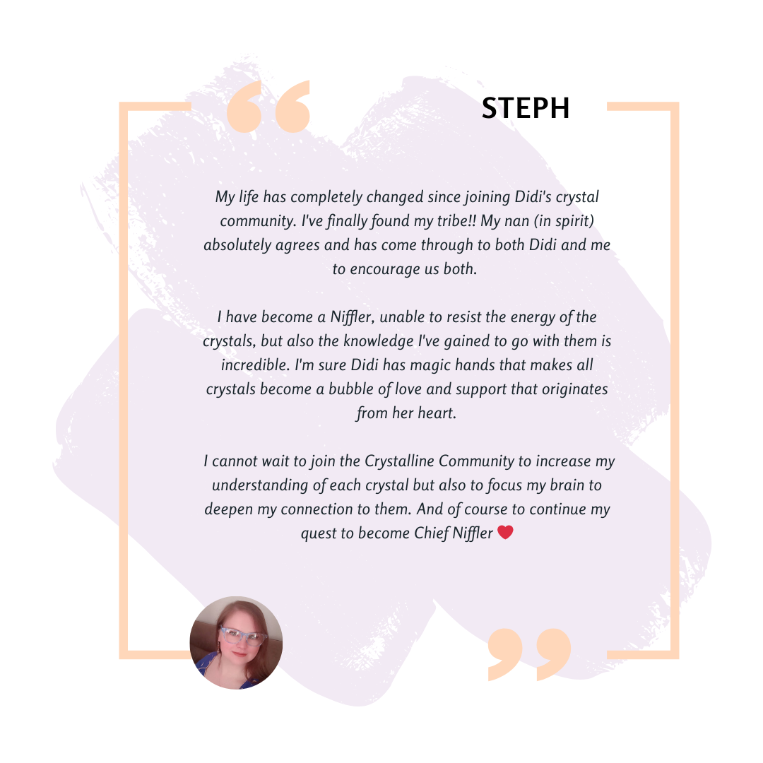A guided crystal membership for those who want to deepen their spiritual practice, connect with a like-minded soul family, and learn how to actually work with their crystals (not just collect them).