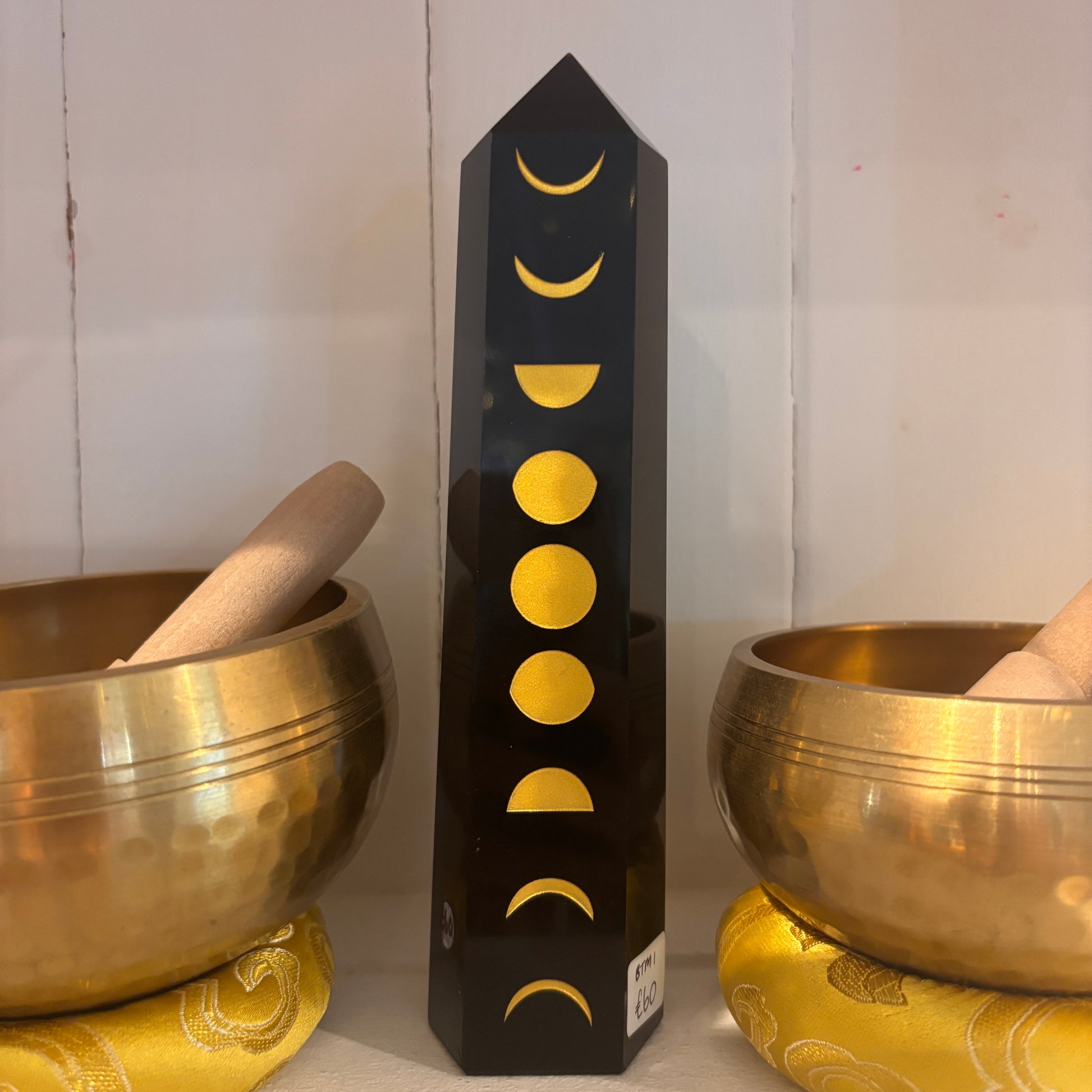 This beautiful crystal pillar stands at 18.7cm tall, weighing over half a kilogram, and is engraved and embossed with the nine phases of the moon .