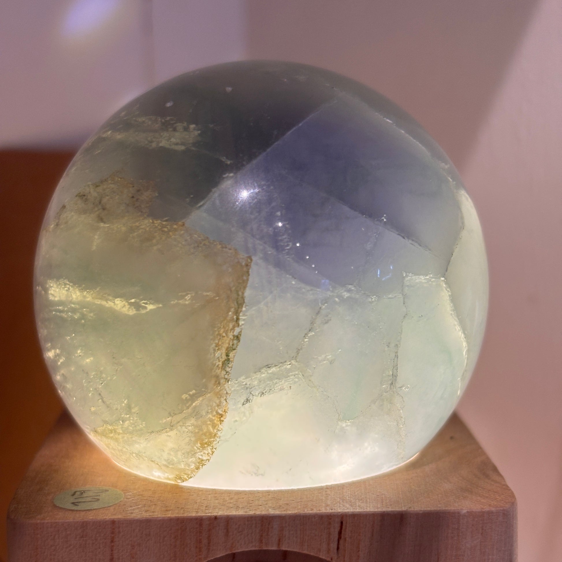This is a beautiful example of a Blue Fluorite sphere, with a diameter of 6cm and weighing over 300g!