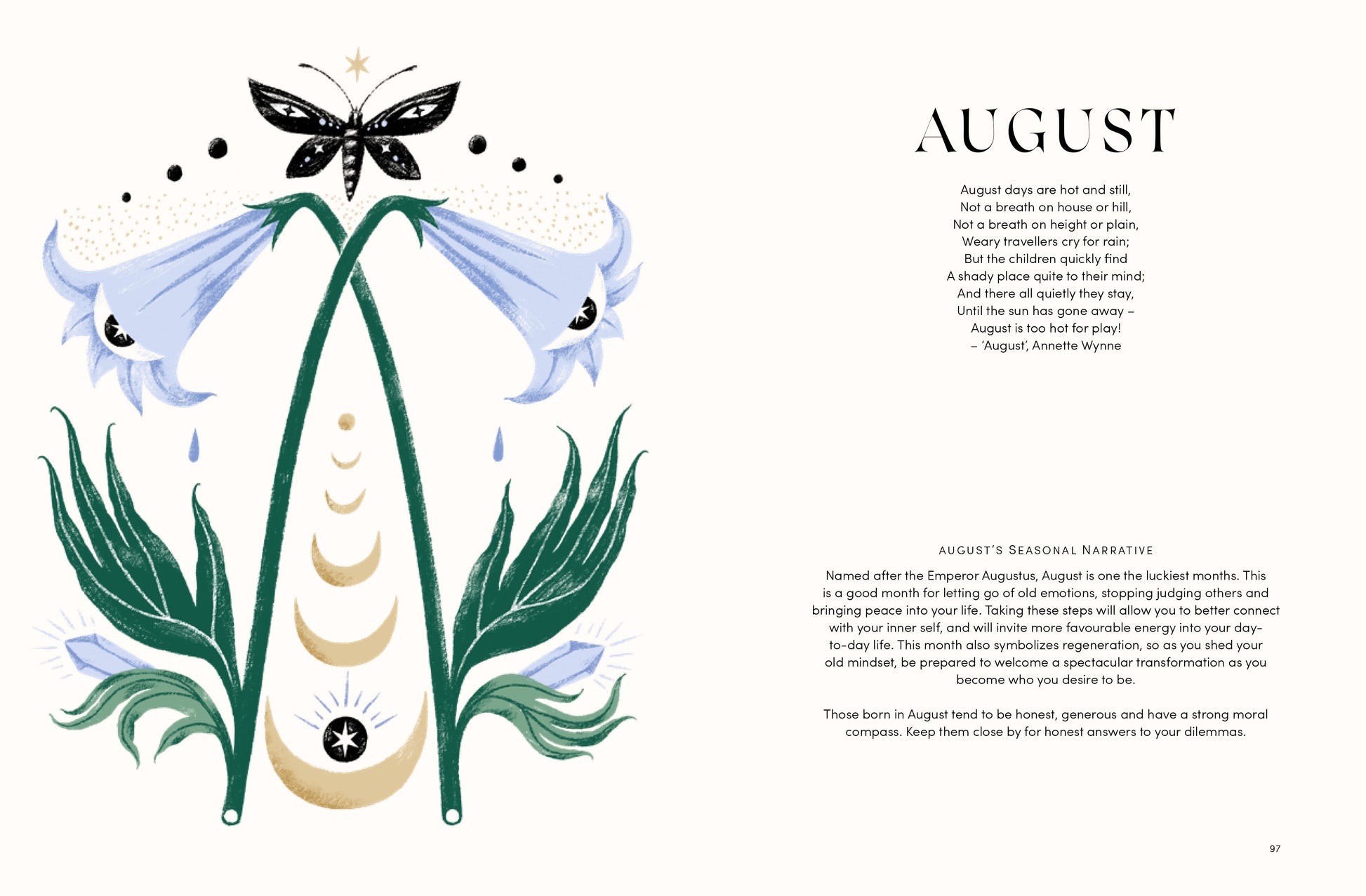 As well as key crystals for the month, Claire guides you through symbols and superstitions from the natural world, and shares self-care rituals, meditations and affirmations to support you through each phase of the year.