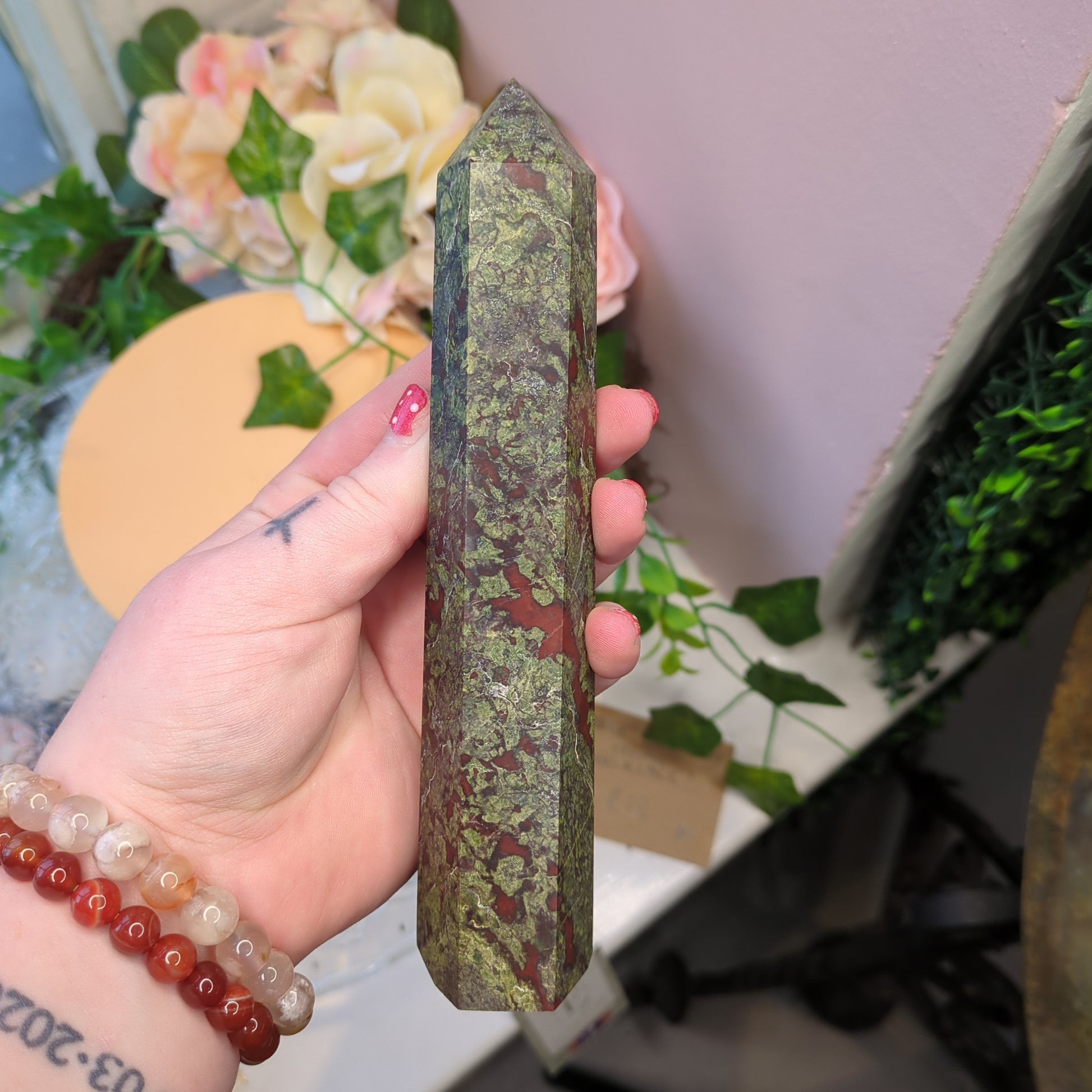 This huge Dragon Blood Jasper tower is 17.5cm tall and weighs 381g.