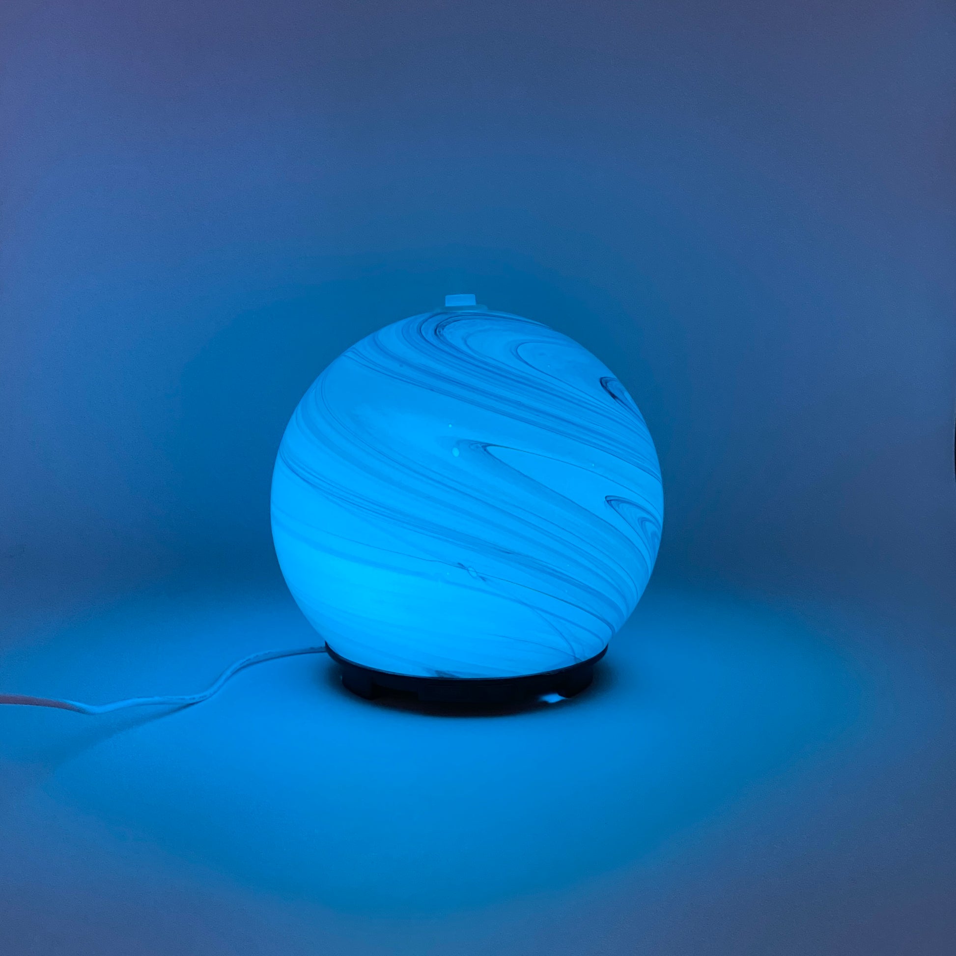 A stunning glass dome electric diffuser that uses advanced ultrasonic technology to combine essential oil and water to create a cool, fragrant mist.