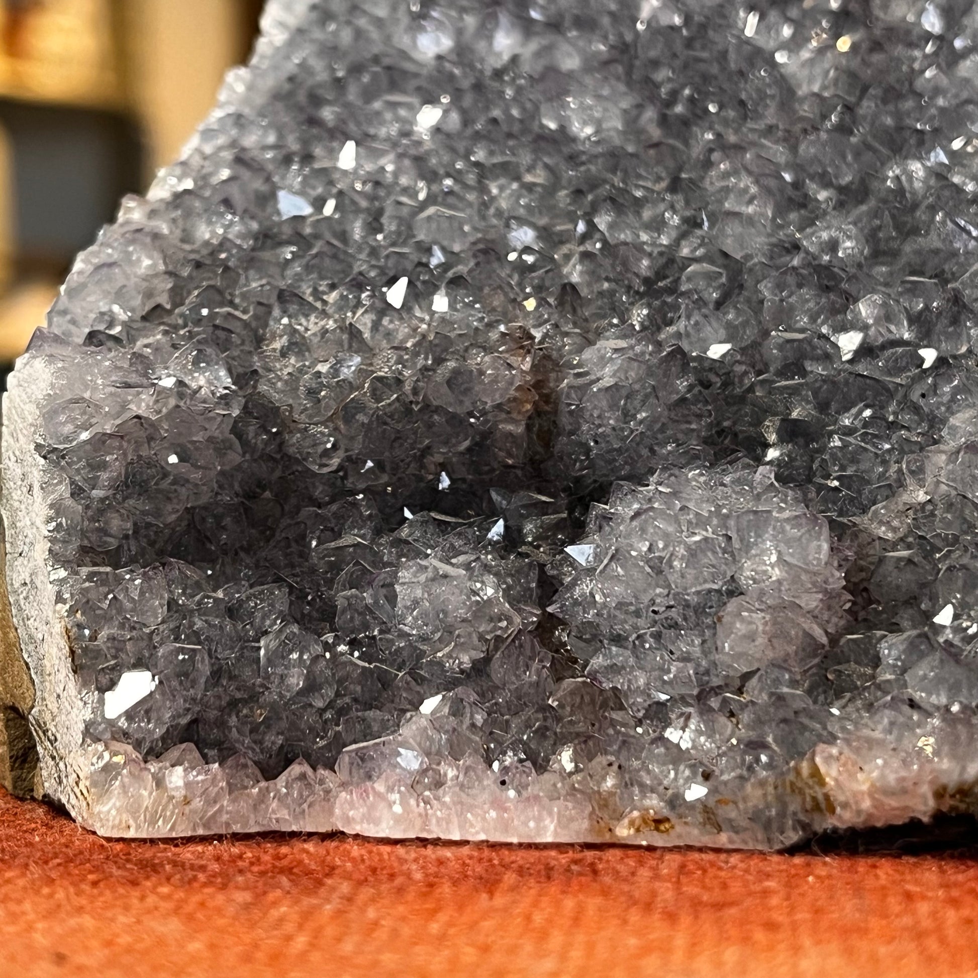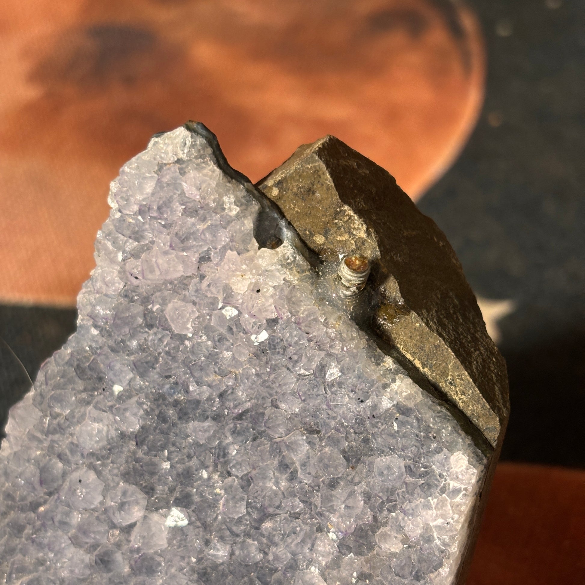 This beautiful Lavender Amethyst is from Brazil. Like many Amethyst clusters and cathedrals, this has been stabilised in concrete to preserve it appropriately, and the stabilising screw is visible at the top of the cluster (which is reflected in the discounted price)